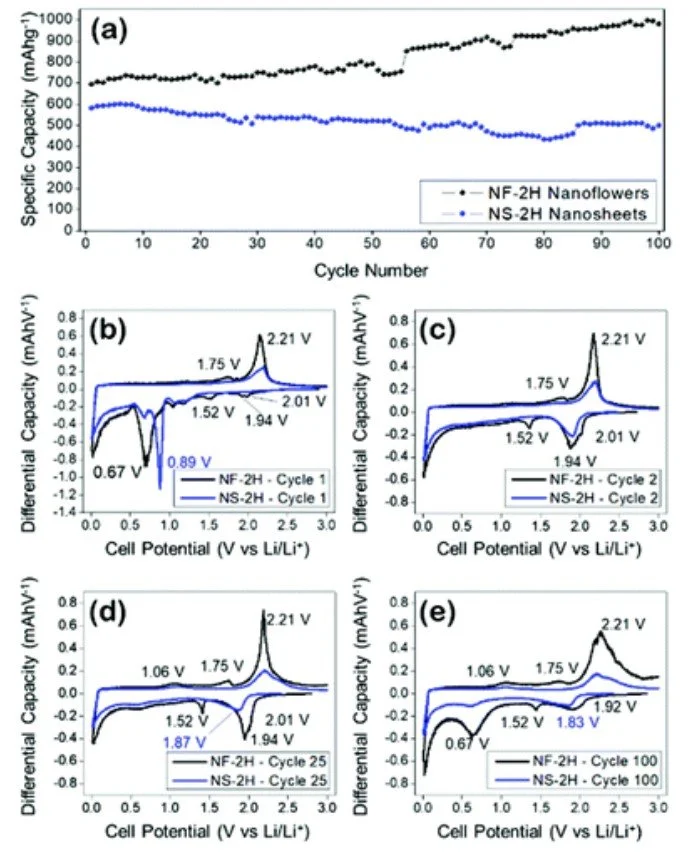 In this direction, our group has colloidally synthesised nanocrystals of transition metal chalcogenides (e.g., tungsten diselenide, WSe₂) that can function as active anode materials for lithium-ion batteries. These nanocrystals were made with controlled crystal phases and morphologies using a colloidal hot-injection method and exhibited promising capacity and cycling performance.